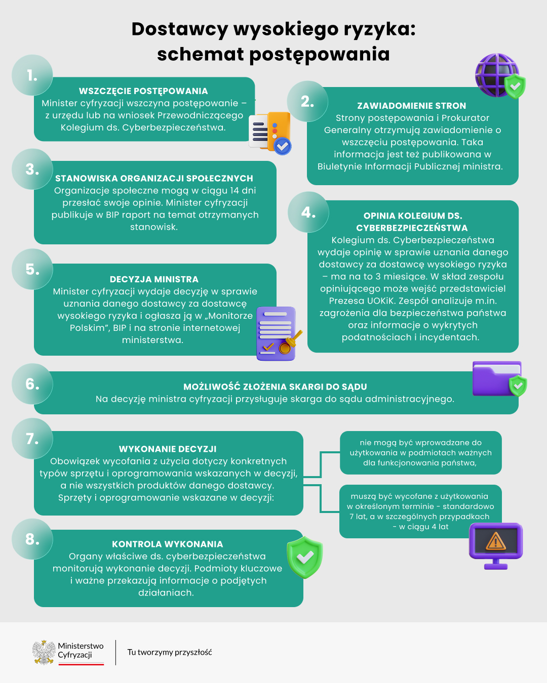 Na poniższej infografice przedstawiono szczegółowy przebieg postępowania w zakresie klasyfikacji dostawcy jako wysokiego ryzyka.